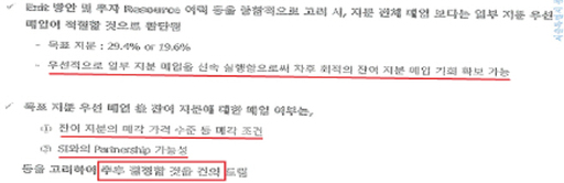나아가 SK는 매도자인 우리은행 측과 비공개협상을 진행하고, SK 임직원이 최태원의 주식매매 계약 체결 전 과정을 지원하는 등 최태원이 이 사건 잔여주식을 확정적으로 취득할 수 있도록 직·간접적으로 지원했다. 그 결과 최태원은 2017년 8월24일 잔여주식 29.4%를 취득했다.