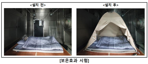 추운 겨울철 실내에 설치하는 난방텐트가 기온을 약 3℃ 높여 에너지 절감효과가 있는 것으로 나타났다.