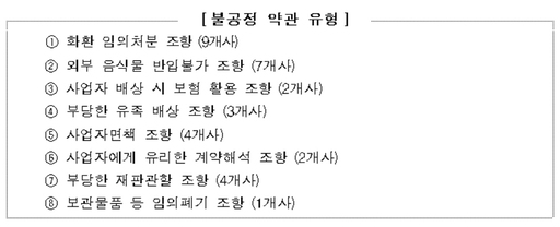 이에 따라 약관에서 일체의 반입을 금지하는 조항은 삭제하고, 조리된 음식 등 변질 가능성이 있어 식중독, 전염병 등 위생상 제한 필요성이 있는 경우로 반입의 제한 범위를 한정했다. 다만, 조리된 음식이라고 해도 사업자와 고객이 협의해 음식물 반입 여부를 정할 수 있게 했다.