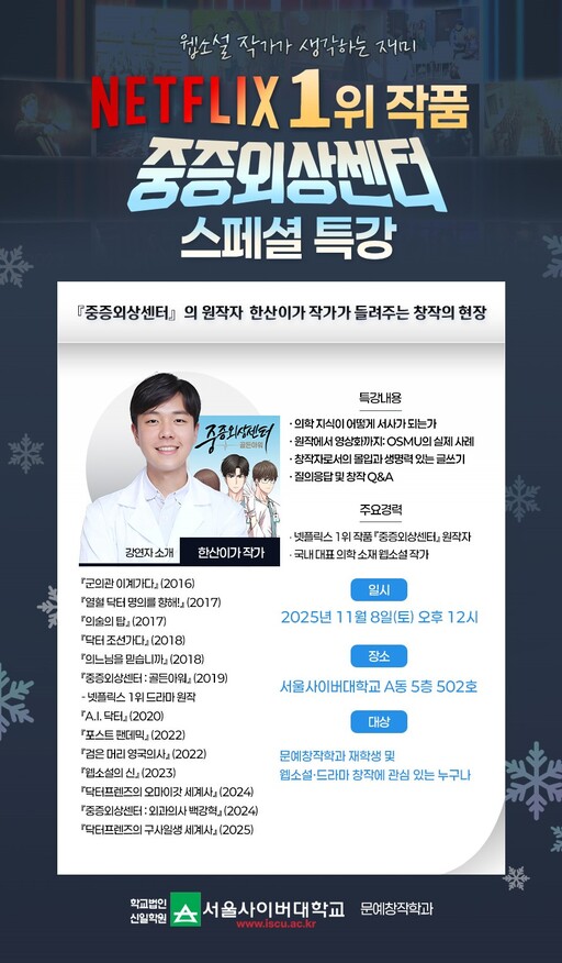 ◆서울사이버대 웹문예창작학과, 중증외상센터 한산이가 작가와 '스페셜 특강' 개최