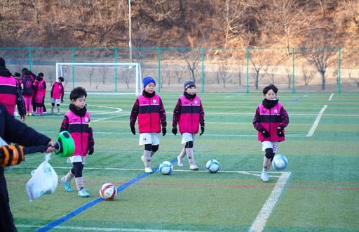 동계 전지훈련'스포츠 르네상스'가속(전지훈련을 위해 울진을 찾은 유소년축구팀이 훈련을 하고 있다)
