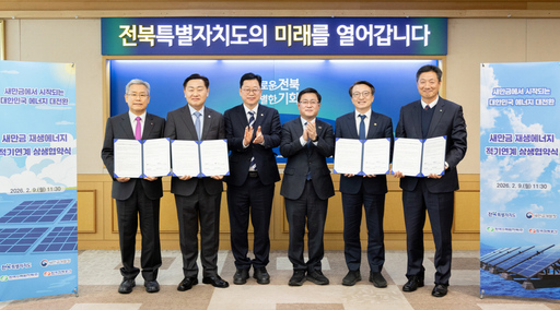 기후에너지환경부는 9일 전북특별자치도청에서 전북특별자치도, 새만금개발청, 한국수력원자력, 한국전력공사와 함께 새만금 수상태양광 사업 조기 추진을 위한 업무협약(MOU)을 체결했다고 밝혔다.