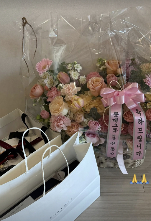최 선수의 감사는 SNS에서도 이어졌다. 이달 17일 오후 인스타그램 스토리에 '축하드립니다. 롯데그룹 회장 신동빈'이라는 문구가 적힌 대형 꽃바구니와 롯데호텔 베이커리 '델리카한스' 쇼핑백이 담긴 사진을 게재하며 두 손을 모은 이모티콘으로 감사를 표했다.