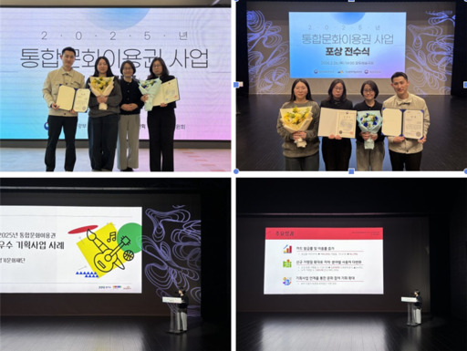 문화체육관광부와 한국문화예술위원회가 17개 시·도 지역 주관처를 대상으로 실시한 '2025년도 통합문화이용권 지역 주관처 운영 실적 평가'에서 통합문화이용권 기획 사업 수행 성과 우수 기관으로 평가를 받았다. 이에 지난 26일 개최된 '2025년도 통합문화이용권 사업 유공자 포상 전수식'에 참석하여 한국문화예술위원장상을 수상하고, 우수사례를 발표하는 자리를 가졌다.