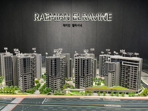 먼저 독특한 아파트 이름이 눈에 띈다. '엘라비네(Elavine)'는 스페인어 정관사 'EL'과 협곡을 뜻하는 'RAVINE'을 연결한 말이다. 협곡의 역동적인 이미지를 디자인에 반영해 방화뉴타운의 랜드마크 단지로 만들겠다는 구상이다.