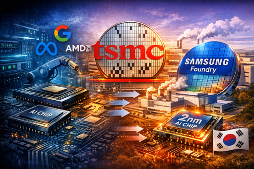 빅테크 기업들의 인공지능(AI) 칩 경쟁이 격화되면서 엔비디아 그래픽처리장치(GPU)에 대한 의존도를 줄이기 위한 자체 반도체 개발이 확산되고 있다. 아울러 세계 최대 파운드리 업체인 대만 TSMC의 생산능력이 한계에 가까워지면서 주요 고객사들의 공급망 다변화 움직임도 나타나고 있다. 업계에서는 삼성전자 파운드리가 대안으로 부각될 가능성에 주목하는 분위기다.