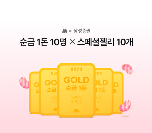먼저, 추첨을 통해 선정된 10명에게는 '순금 1돈'을 증정한다. 더불어 경품 당첨 여부와 상관없이 모니모 앱을 통해 삼성증권 계좌를 최초 신규로 개설한 모든 고객에게는 모니모에서 현금처럼 사용할 수 있는 '스페셜젤리' 10개를 4월 이내에 지급한다.