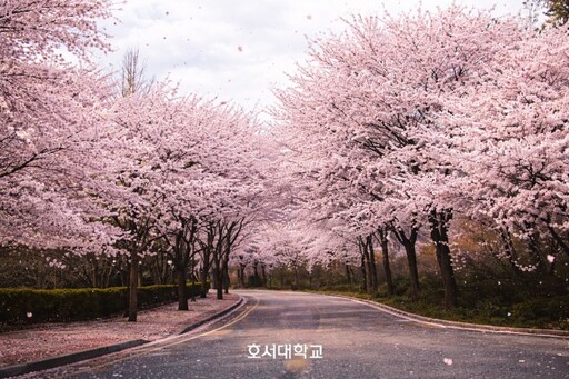전국 곳곳에 벚꽃이 만개한 가운데 충남 아산 호서대 캠퍼스 벚꽃 풍경이 봄 명소로 주목받고 있다. 최근 드라마 촬영지와 소셜미디어를 통해 알려지며 방문객들의 발길이 이어지고 있다./호서대 제공