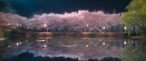JTBC 드라마 '경도를 기다리며'에 등장한 충남 아산 호서대 캠퍼스 벚꽃 야경. 호수와 산책로를 따라 펼쳐진 벚꽃이 밤 풍경과 어우러지며 봄 정취를 더하고 있다.호서대 벚꽃은 화요일부터 주말 사이 만개할 것으로 예상된다./호서대 제공