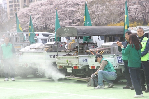 새마을방역봉사대는 방역장비를 가동하며 하절기 집중 방제의 본격적인 시작을 알렸다. / 안양시 제공