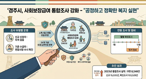 경주시는 사회보장급여 대상자의 자격을 정확히 확인하고 공정한 급여 지급을 위해 통합조사를 강화하고 있다고 12일 밝혔다.