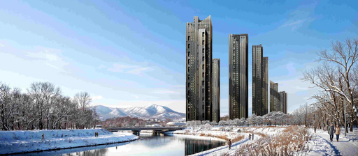 건물 외관은 수직적 실루엣에 겹쳐진 원형의 선들이 회전하며 상승하는 듯한 역동적 곡선 패턴까지 더해져 보는 각도에 따라 달라지는 다채로운 입면을 구현했다. 양재천 수변공원과 연계한 조망형 아트라운지 '스파이럴 쉘'은 단지의 상징적 오브제로 단지 전체가 하나의 거대한 예술 작품이 되도록 계획했다.